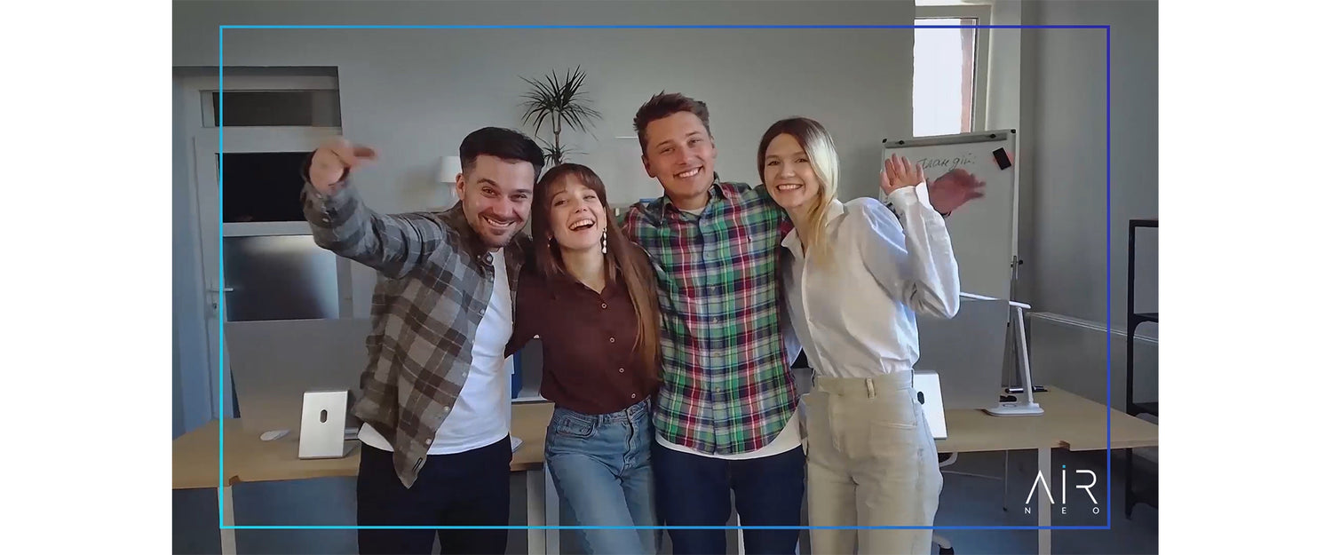 AIR NEO takes 2 wide-angle shots from 5’ away making sure to get the whole group in thae frame or the breadth of the background.